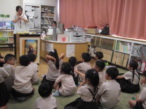 1年生の図書の時間です。みんな本好きになろうね。